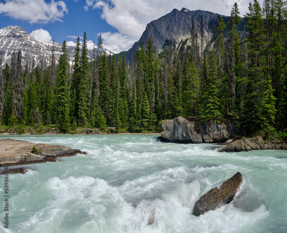 Rapids on the Kicking Horse River in Yoho National Park and the Canadi...